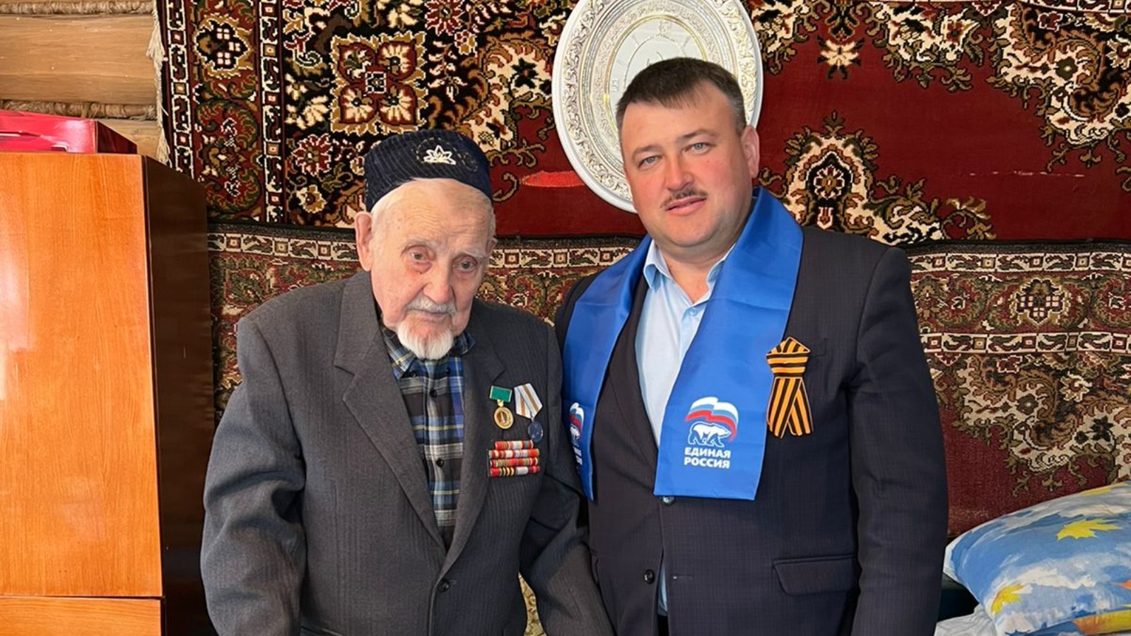 Иске Чәчкаптан Зиннәтулла Заһидуллинга һәм Ябалактан Аманулла Хәмидуллинга Альберт Илгизәр улы ТР Президенты, «Бердәм Россия» партиясе исеменнән чәчәк бәйләмнәре, котлау открыткалары һәм азык-төлек җыелмалары тутырылган пакетлар тапшырды.