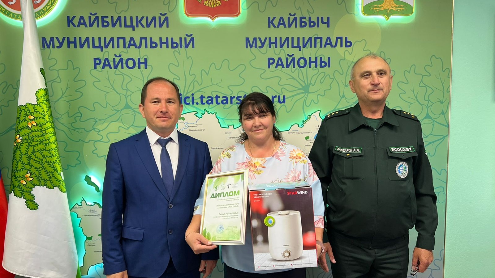Акциянең район этабында җиңүчеләренә дипломнар һәм бүләкләрне башкарма комитет җитәкчесе Алексей Макаров белән Татарстан Республикасы Экология һәм табигать ресурслары министрлыгының өлкән белгече Әмир Җаббаров тапшырды.