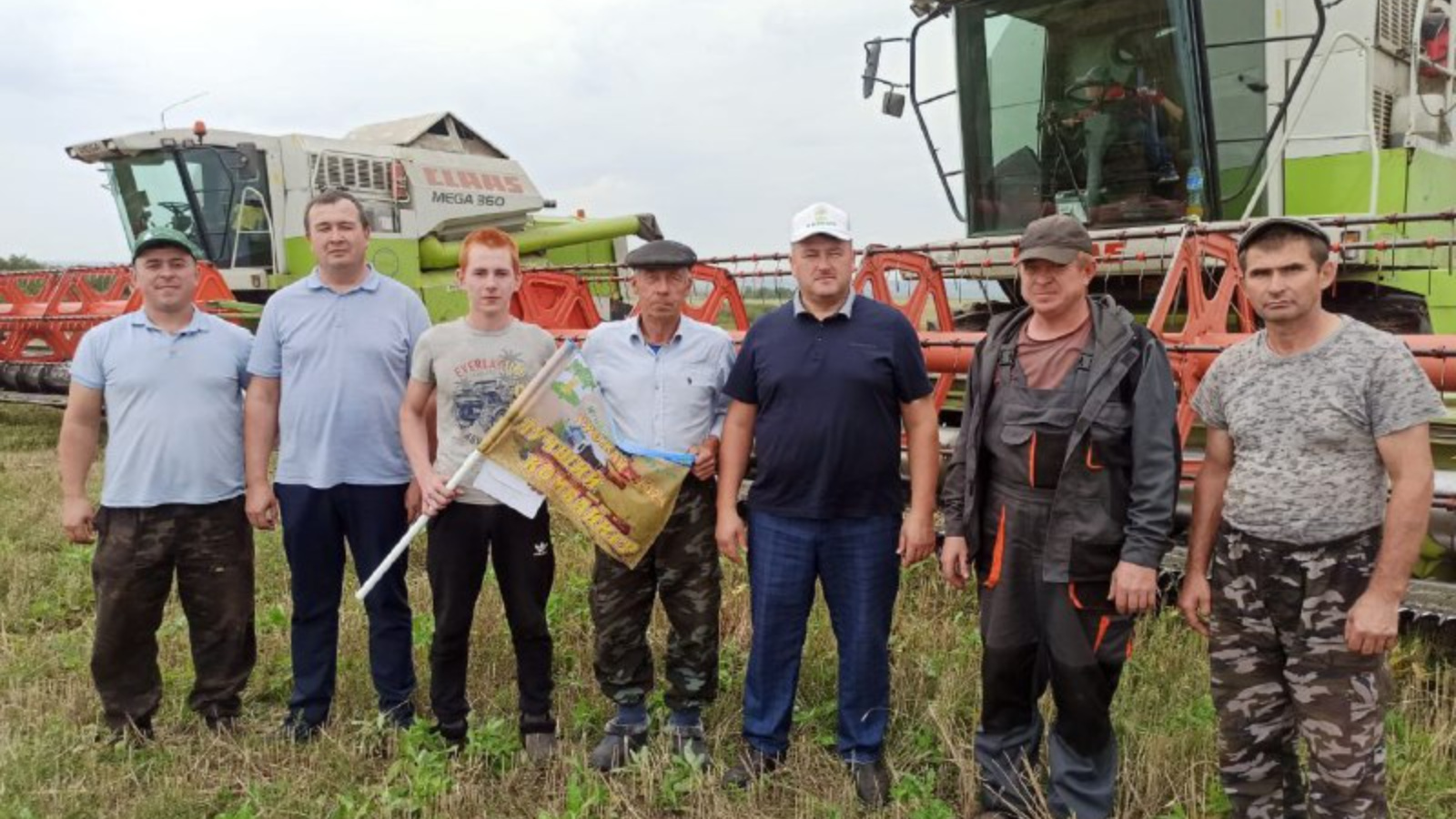 авыл хуҗалыгы һәм азык-төлек идарәсе начальнигы Радик Камалетдинов белән берлектә районның алдынгы комбайнчыларына флаглар, акчалата бүләкләр тапшырдылар.