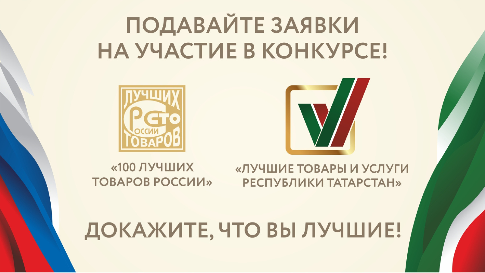 «Татарстан Республикасының иң яхшы товарлары һәм хезмәтләре» республика конкурсында җиңүчеләргә «Россиянең иң яхшы 100 товары»Программасын Бөтенроссия конкурсының федераль этабына чыгару хокукы бирелә.