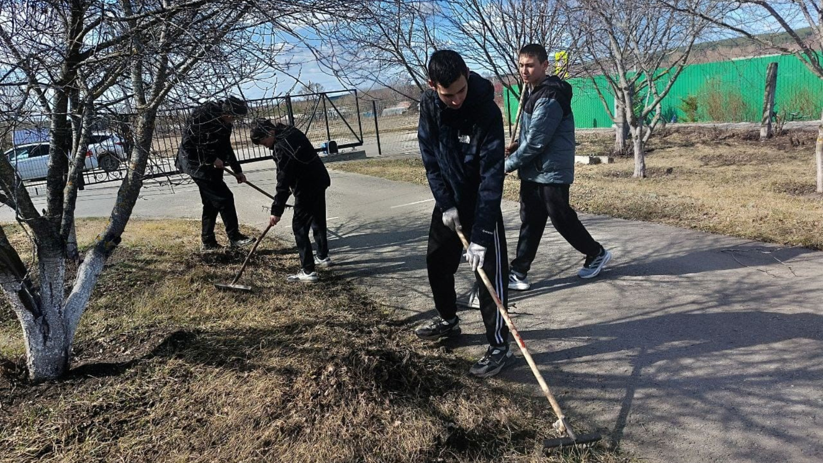 Чүти мәктәбе укучылары мәктәп территориясен тәртипкә китерделәр