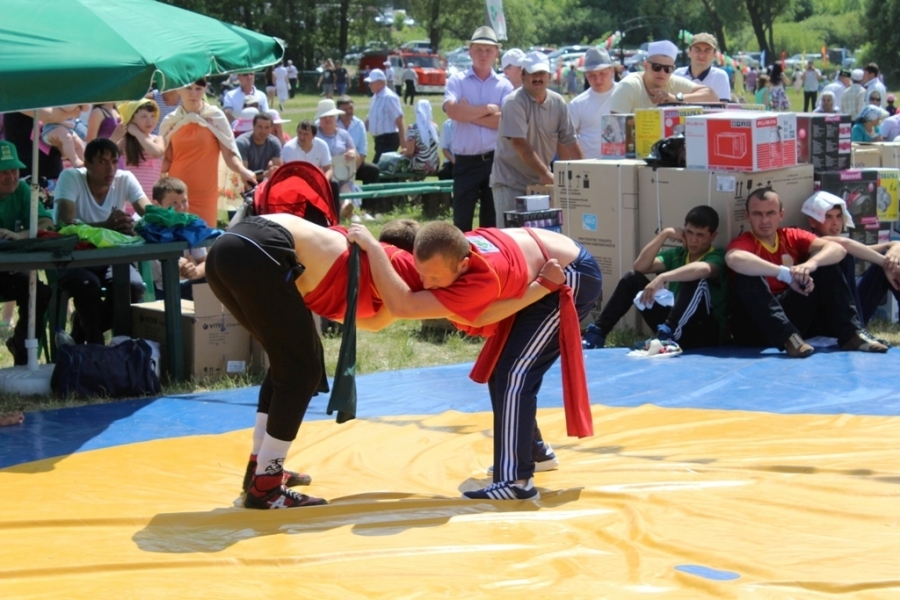2014 елгы Сабан туеның абсолют батыры исеме өчен узган елгы батыр Николай Горшков белән яшь егет Марсель Сәйфуллин көрәште. Николай өченче ел рәттән район Сабан туеның абсолют батыры исемен яулады. Җиңүчеләргә, призлы урыннарга чыгучыларга бүләкләрне район башлыгы Альберт Рәхмәтуллин тапшырды.