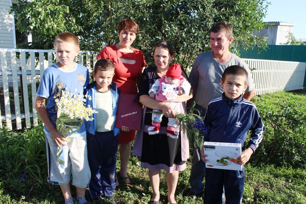 Гаилә бәйрәменә чакырылган Людмила белән Олег Рыбаковларның уч төбедәй нәни кызларына ничек назлап караганнарын күрсәгез иде сез! Тупырдап үсеп килүче өч уллары – Саша, Денис, Андрейдан соң алып кайткан тансык кызлары Лиана бит ул! Авылдашлары Людмила белән Иван Козиннар гаиләсендә дә шатлык: быел нәни уллары Борис туган. Кызлары Оля, Полина, уллары Коля кулларыннан да төшерми аны. Тагын бер зур сөенеч: дүрт балалы бу гаиләләрдәге нәниләр капитал белән туган. Пенсия фондының Кайбычтагы идарәсе начальнигы Гөлчәчәк Зиннурова аларга сертификатларны тантаналы төстә тапшырды.
