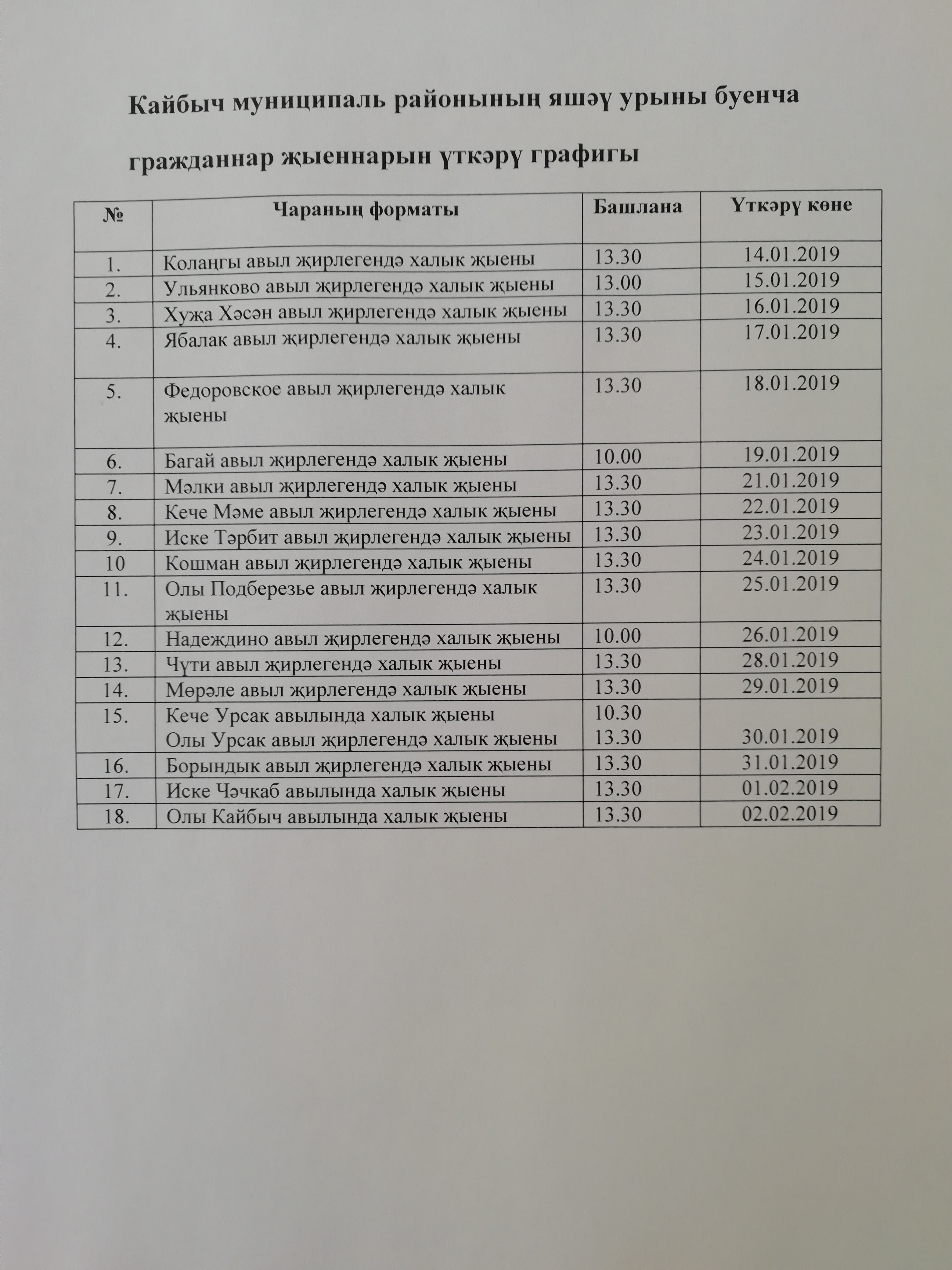 2019 елның 6 һәм 7 гыйнвар көннәрендә Кайбыч районы православие храмнарында православие бәйрәме - Раштуа бәйрәме уңаеннан гыйбадәт кылу узачак. Турминское авылының Святотроицк храмында Раштуа хезмәте 6 гыйнварда 22:00 сәгатьтә башлана һәм 7 гыйнварда 03:00 сәгатьтә тәмамлана, ә Кече Подберезьеда хезмәт 7 гыйнварда 8:00 сәгатьтә башлана һәм 10:00 сәгатьтә тәмамланачак.